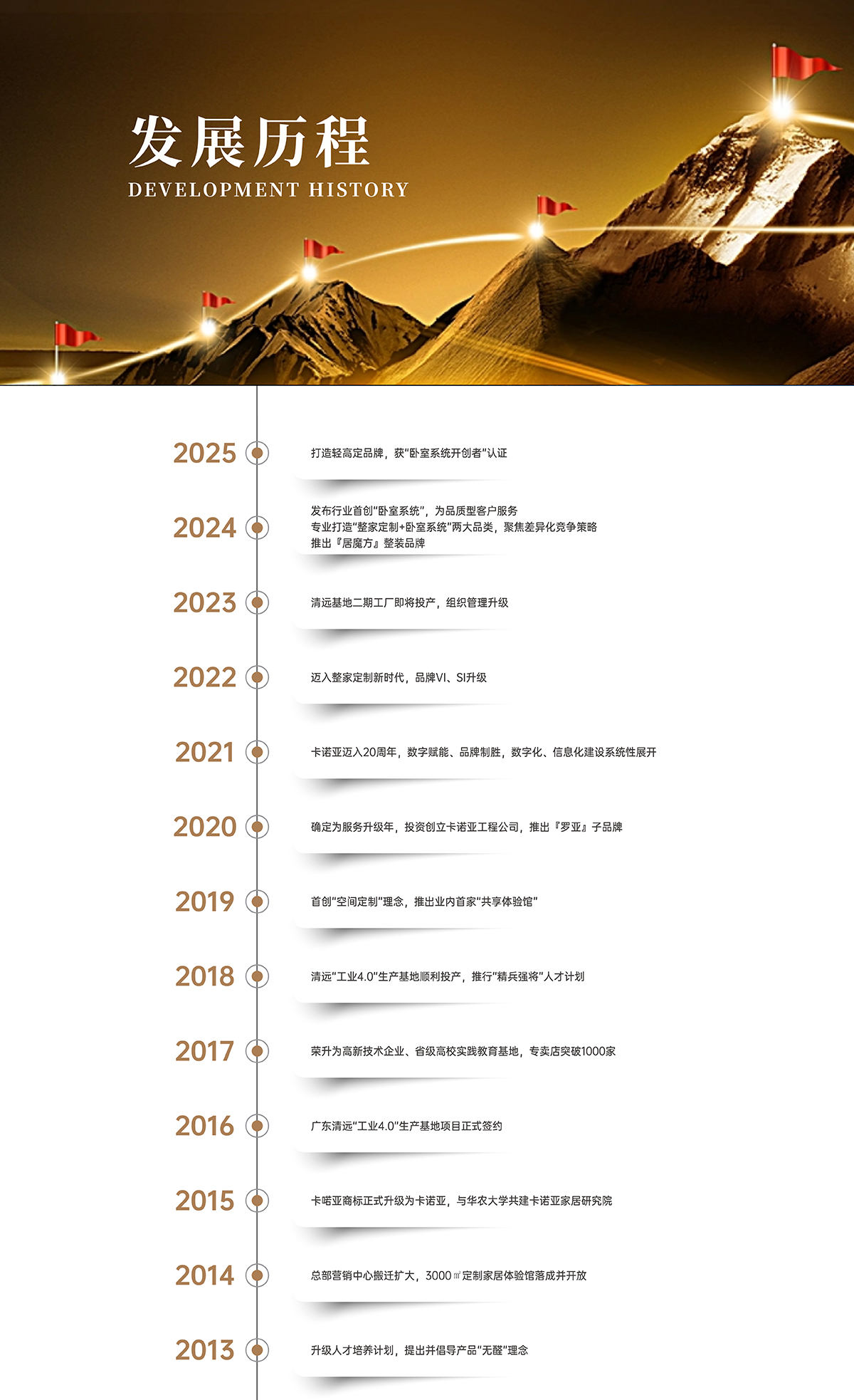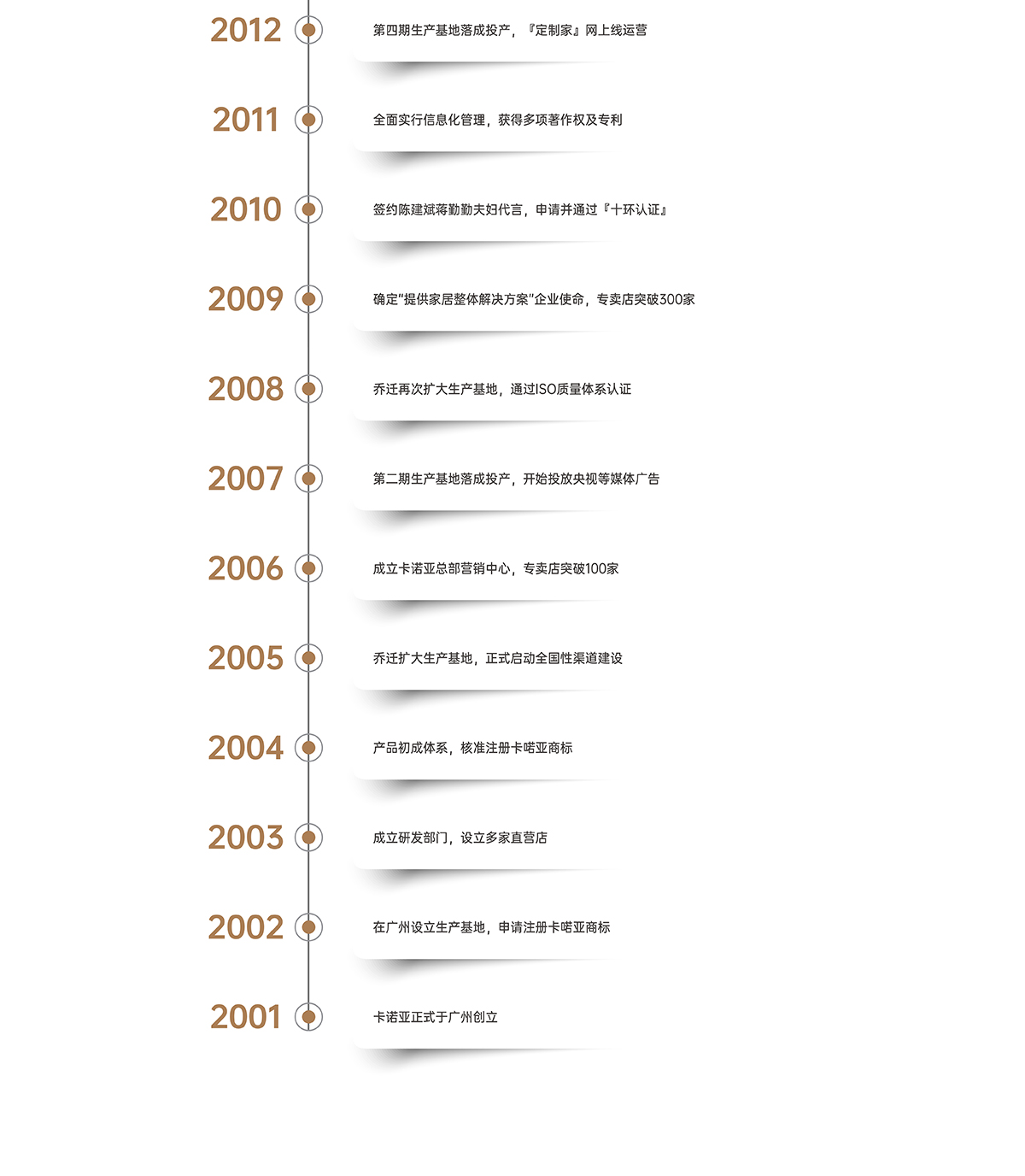 卡諾亞創(chuàng)立于2001年,是集研發(fā)、設(shè)計、生產(chǎn)和服務(wù)于一體的高新技術(shù)企業(yè)。旗下?lián)碛芯幽Х秸b、卡諾亞高端定制、羅亞全屋定制三大品牌。
