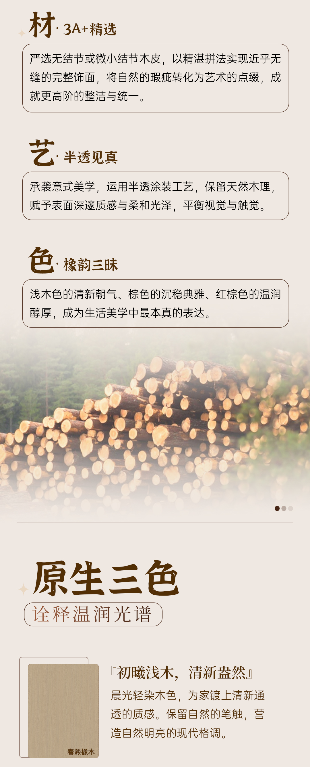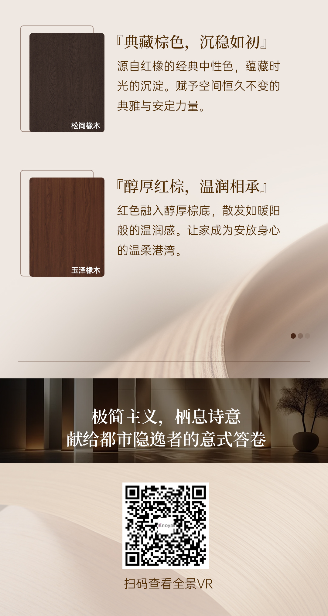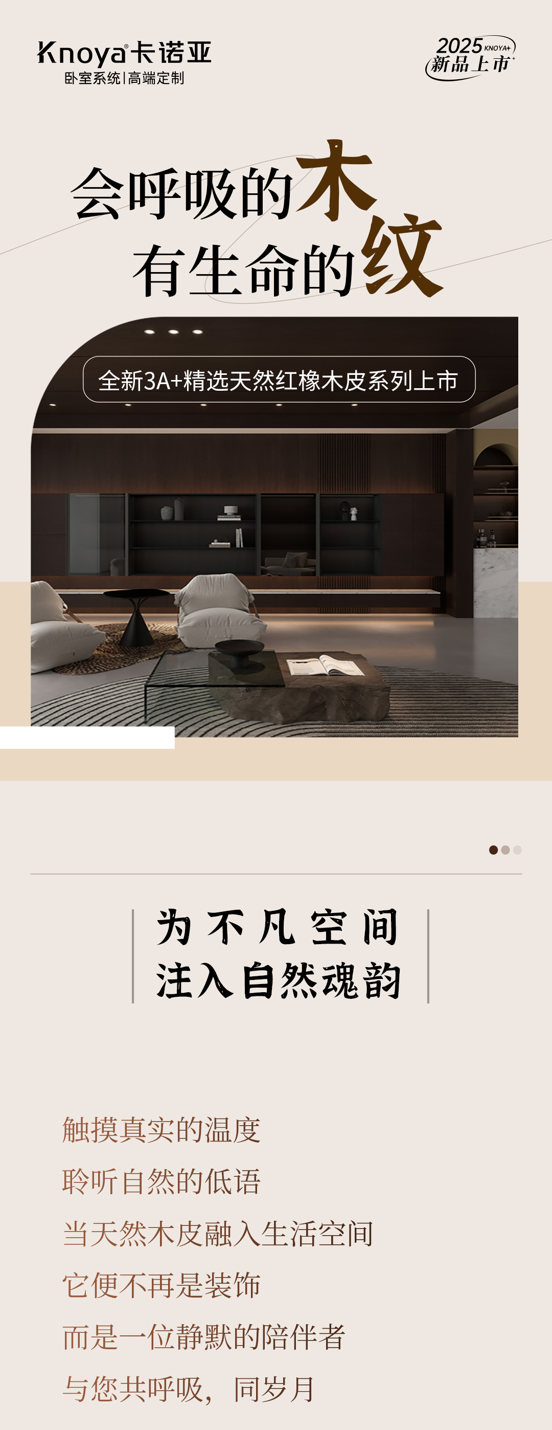 2025年新品系列 | 全新3A+ 精選天然紅橡木木皮系列上市以意式極簡風(fēng)格為核心設(shè)計(jì)語音,剝離空間冗余裝飾,通過對材質(zhì)、光影與線條的精準(zhǔn)把控,構(gòu)建兼具理性秩序與人文溫度的現(xiàn)代居所。