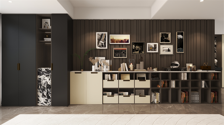 對于120㎡以上大戶型,羅亞注重“空間分區與風格統一”,通過定制家具實現區域功能與美學調性的和諧。在開放式客餐廳,設計“餐邊柜+酒柜+展示柜”一體化造型,采用同色系板材與金屬線條勾勒,增強空間縱深感;在主臥套房,打造“步入式衣帽間+梳妝臺+床頭柜”完整系統,根據衣物類型規劃掛衣區、疊放區、首飾區,滿足精細化收納需求;在書房設計“隱形門書柜+升降桌”組合,關閉時是一面完整的書墻,打開后通往其他區域,兼顧私密性與整體感。
